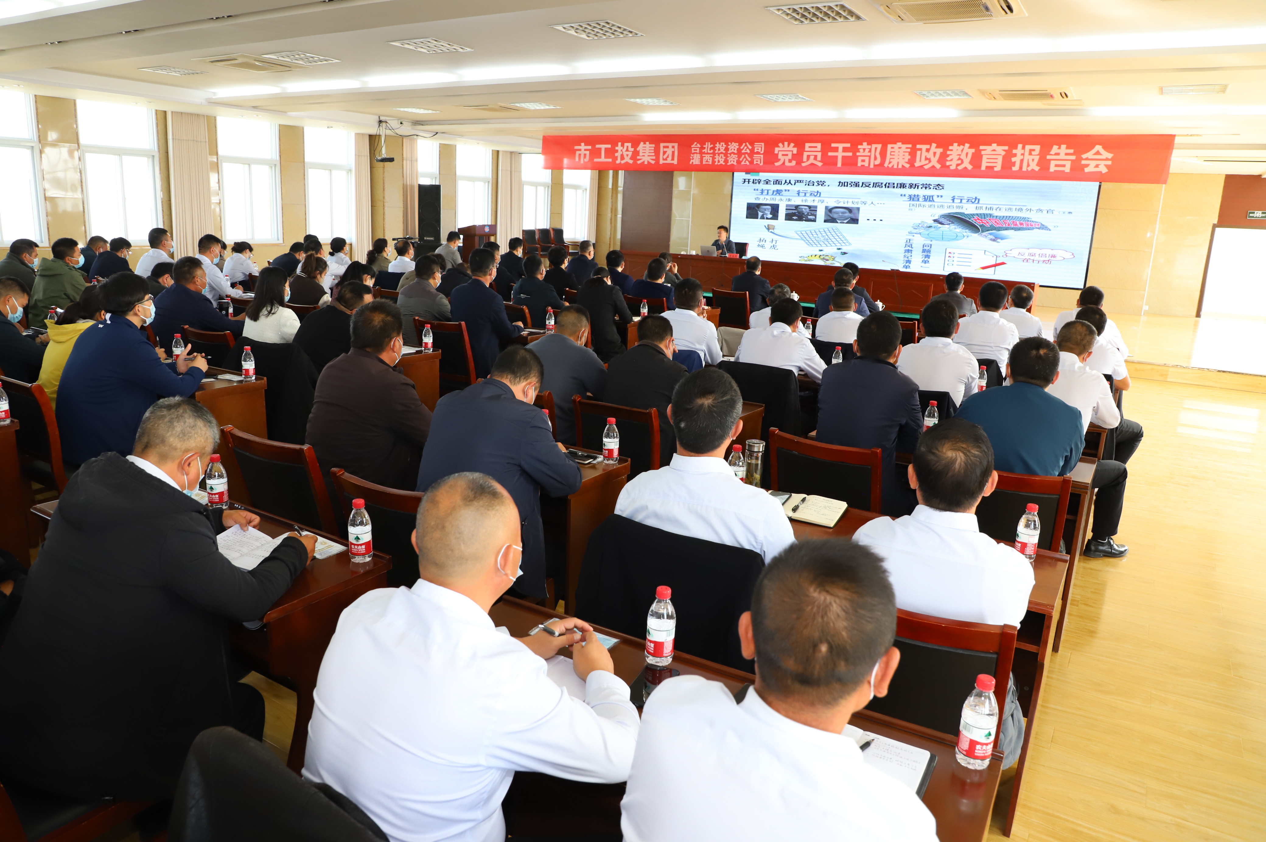 為認真貫徹落實黨的二十大精神,持續深化全面從嚴治黨,進一步增強黨員干部廉潔自律意識,1028上午,灌西、臺北投資公司聯合舉辦廉政教育報告會。集團紀委書記汪群、副書記王建松出席報告會。
