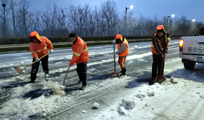 2月19日至21日,受持續(xù)大風(fēng)寒潮天氣影響,給徐圩新區(qū)、板橋工業(yè)園區(qū)各條道路蓋上較厚冰層。為全力以赴掃雪除冰、排除隱患,悅升公司堅(jiān)持“人動機(jī)動、雪停雪凈”原則,落實(shí)好“三包三聯(lián)”工作機(jī)制,實(shí)現(xiàn)道路通暢、安全出行,切實(shí)保障好廣大群眾正常生產(chǎn)生活秩序和生命財產(chǎn)安全。