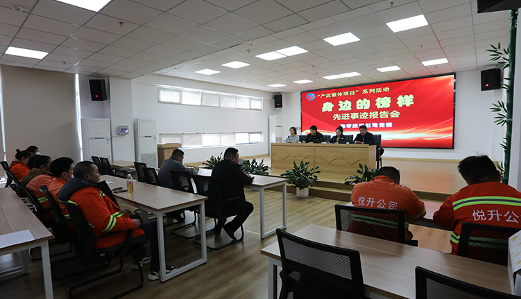 為深化推進“學習身邊榜樣”活動向基層延伸,提高活動參與性和效果性,12月7日下午,投資公司在悅升環衛運營管理中心舉辦“身邊的榜樣”先進事跡報告會,悅升公司60余名干部職工一起參加報告會。