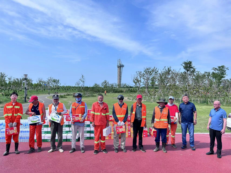 在現(xiàn)場,為他們送去礦泉水、八寶粥、冰紅茶、牛奶等防暑降溫物品和生活用品。莊董事長與員工們親切交談,關(guān)心詢問員工作和生活情況,并叮囑要合理調(diào)整工作時間,妥善做好員工高溫防暑降溫工作。接到領(lǐng)導(dǎo)遞到手上的慰問品,聽著領(lǐng)導(dǎo)的問候和囑咐,員工們心懷感激,競相表示要克服酷暑高溫,堅守崗位,盡職盡責(zé),以飽滿的工作熱情為企業(yè)發(fā)展貢獻力量。(孫祥艷)