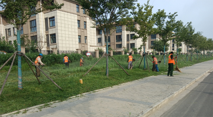 炎炎夏日,仍然阻擋不了綠化先鋒傾情奉獻的熱情。早晨6點,大家就開始一天的工作了。修剪過程中采用人工、機械相結合的方式,對面積相對較大、地面相對平整且障礙少的草坪綠地,采用手推式草坪機進行修剪;對障礙物較多的綠化采用人工拔草的方式。驕陽似火,綠化衛(wèi)士們干的熱火朝天,身上的衣服干了濕、濕了干,累了就席地而坐,休息一會,然后繼續(xù)工作。經過兩天的持續(xù)奮戰(zhàn),共清理雜草5萬平方米,出色的完成了此次雜草清理任務。他們用不辭辛苦、愛崗敬業(yè)的態(tài)度換來了新區(qū)優(yōu)美的環(huán)境,也換來了不息的蓬勃朝氣。(陳小東)