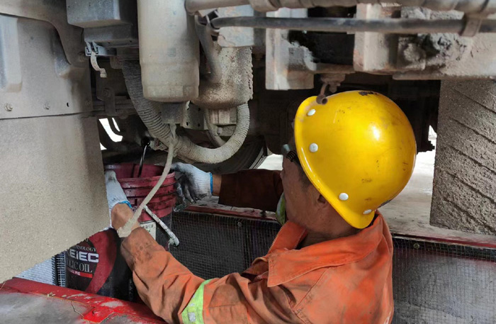 ? ? ? ?入夏以來(lái),保養(yǎng)和維修的環(huán)衛(wèi)車(chē)輛較平時(shí)都有所增加,給維修班組增加了不小的壓力,大家整天都處于“戰(zhàn)斗”狀態(tài)。高峰時(shí)期,一天進(jìn)車(chē)間維修保養(yǎng)的大、小車(chē)輛達(dá)8臺(tái)。在一處維修現(xiàn)場(chǎng),班長(zhǎng)丁寶清與維修工陳寬軍正在貓著腰,歪著頭,對(duì)清掃車(chē)油濾部件進(jìn)行檢修、更換,高溫天氣,維修車(chē)輛對(duì)工人身體素質(zhì)確實(shí)是一種嚴(yán)峻的考驗(yàn),不一會(huì)兒,丁寶清額頭上冒出的汗珠沿著臉頰、下巴往下滴,他抹了抹,手上油漬和污垢在臉上留下了一道道黑痕,他們用實(shí)際行動(dòng)詮釋著愛(ài)崗敬業(yè)的真諦。經(jīng)過(guò)1個(gè)多小時(shí)的兩人默契配合,順利完成此次保養(yǎng)任務(wù)。休息片刻,又投入到新一輪的車(chē)輛檢修中 。